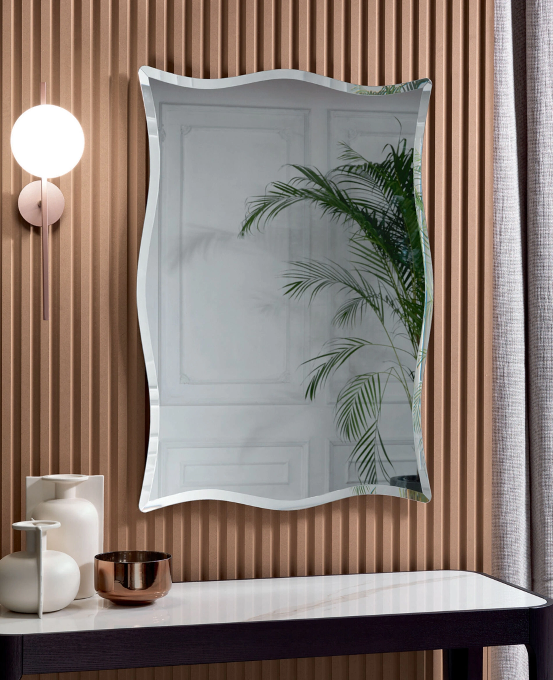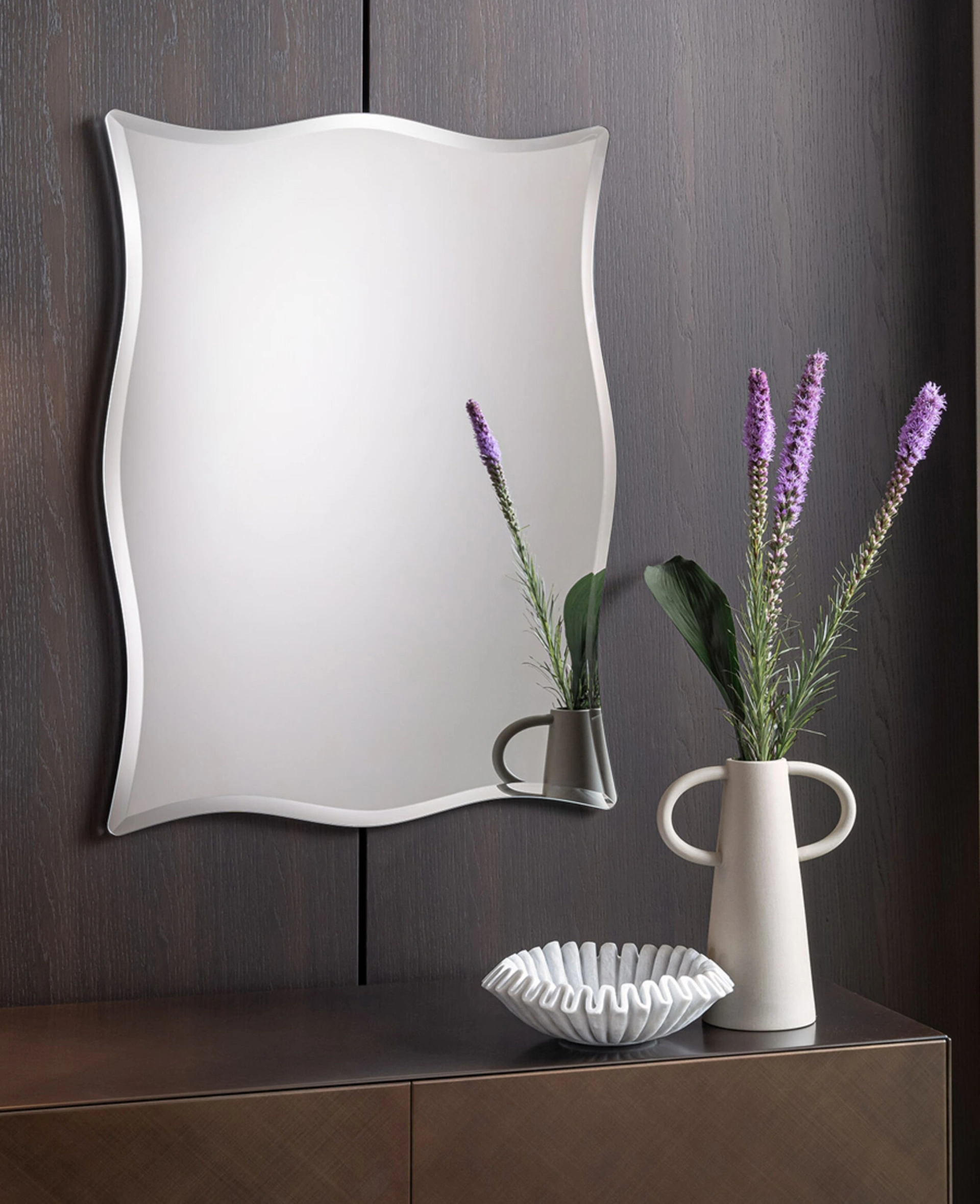 Molto versatili e plurifunzionali, i Complementi moderni senza cornice svolgono funzioni differenti: completano le doti di funzionalità e l'estetica dell'ambiente. Le composizioni di alto valore estetico del brand Riflessi personalizzano l'ambiente con colore e gusto, ricreando peculiari atmosfere arredative. Nel nostro showroom potrai toccare con mano l'eccellenza dei modelli di specchi moderni senza cornice del marchio, proprio come questa soluzione in foto. Complementi e specchi personalizzano l'arredo di casa, riempiendo lo spazio in modo utile e rendendolo accogliente e bello a vedersi.