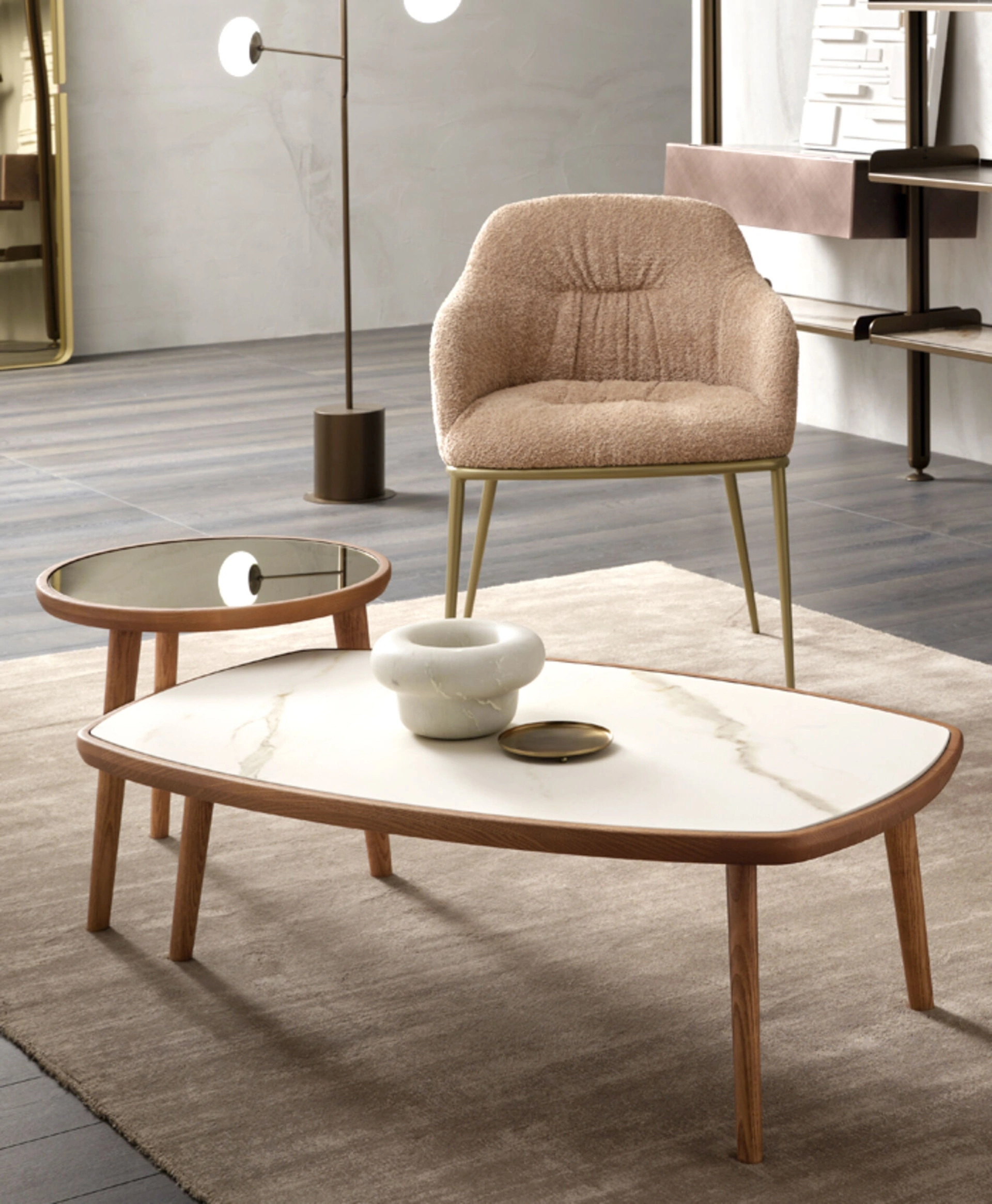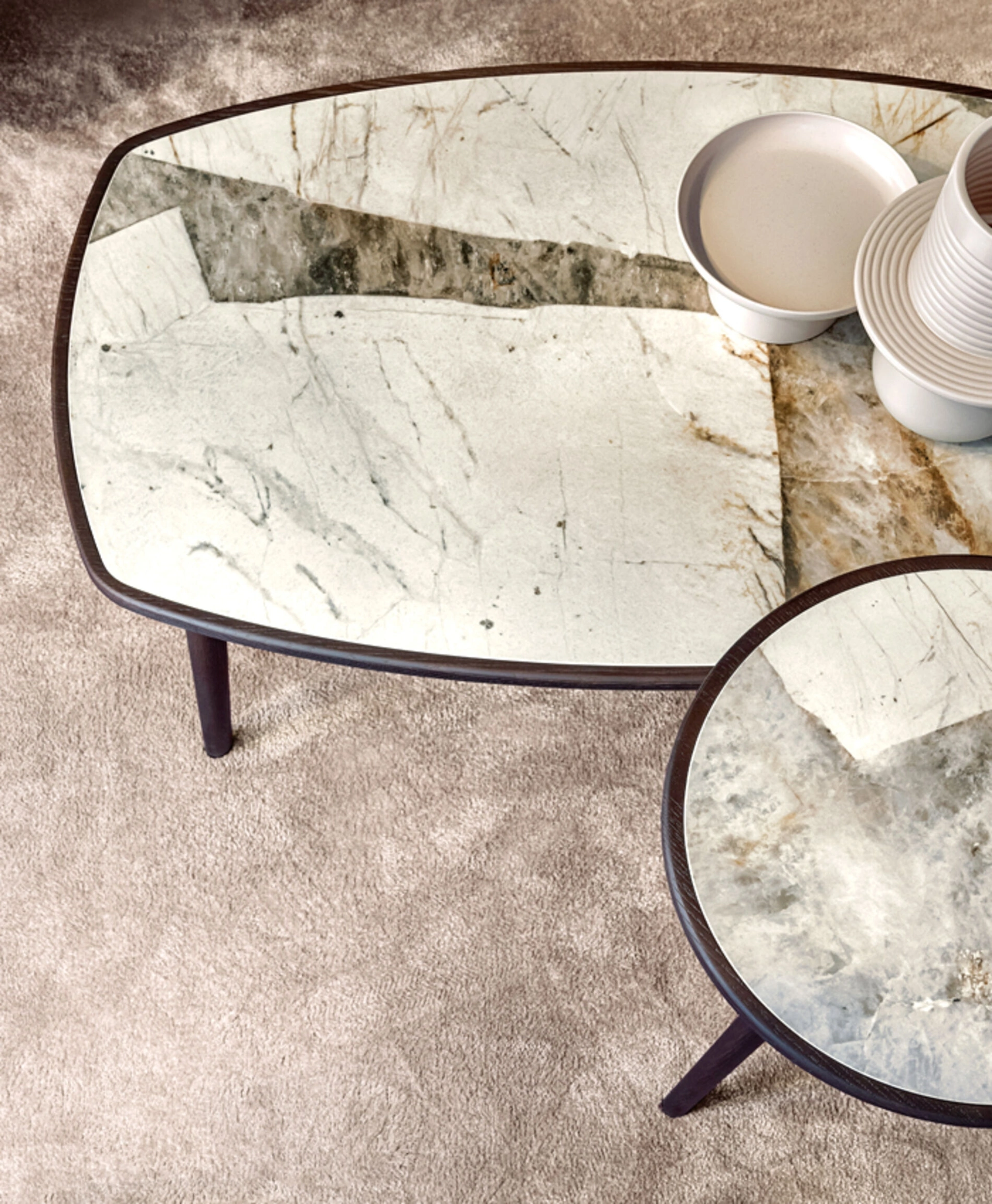 Particolarmente versatili e multifunzionali, i Complementi moderni in ceramica svolgono funzioni diversificate: completano le doti di funzionalità e il valore estetico del locale. Le composizioni di grande fascino del brand Riflessi rendono belli gli interni con colore e gusto, ricreando peculiari atmosfere arredative. Nel nostro punto vendita potrai visionare in prima persona la qualità dei modelli di tavolini moderni in ceramica della marca, proprio come questa soluzione in foto. Complementi e tavolini personalizzano l'arredo di casa, occupando lo spazio in modo utile e rendendolo assai funzionale e di grande valore estetico.