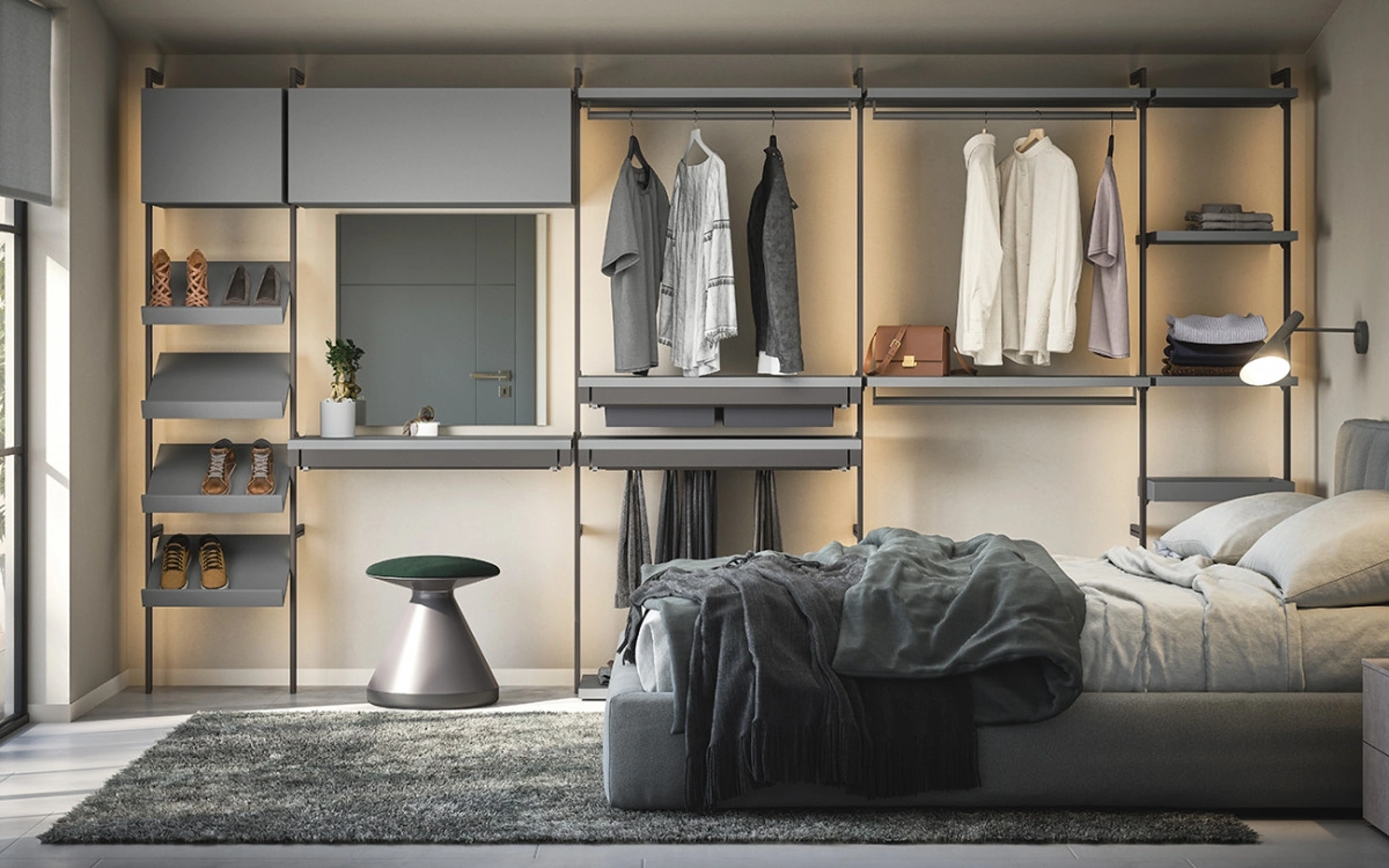 Gli Armadi e le cabine armadio con ante scorrevoli devono progettare la zona notte garantendoti una perfetta ottimizzazione degli spazi e un'esclusiva ricerca stilistica. La camera da letto è dedicata al relax, deve dunque risultare arredata al meglio e completa di mobili ed elementi accessori capaci di creare un'ambientazione sempre distensiva. Cabina Armadio Uniko di Cinquanta3: compila il form, contattaci e dai vita alla stanza del relax come l'avevi sognata. Contattaci per info e preventivi e potrai completare la camera da letto che hai sempre voluto grazie ad una diversificata offerta di contenitori moderni come questo armadio in melaminico nella fotografia.