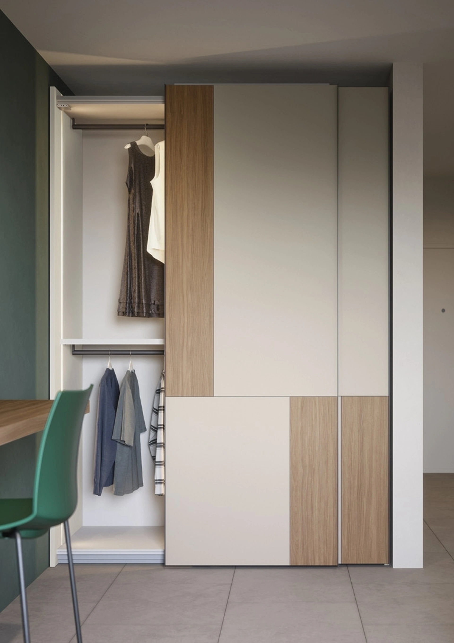 La zona notte è dedicata al relax, deve perciò risultare ben arredata e completa di mobili ed elementi accessori in grado di ricreare un'ambientazione sempre distensiva. Contattaci per informazioni e preventivi e potrai completare la zona notte che hai sempre sognato grazie ad una ricca offerta di mobili contenitori moderni come quest'armadiatura in melaminico in foto. Per completare al meglio il concept d'arredo, scegli le nostre proposte di Arredamento Casa Cesena delle migliori marche, letti, armadi e comò diversi per eleganza, dimensione e materiale. Gli Armadi e le cabine armadio con ante scorrevoli devono progettare la camera da letto garantendoti una perfetta organizzazione degli spazi e un'esclusiva ricerca stilistica.