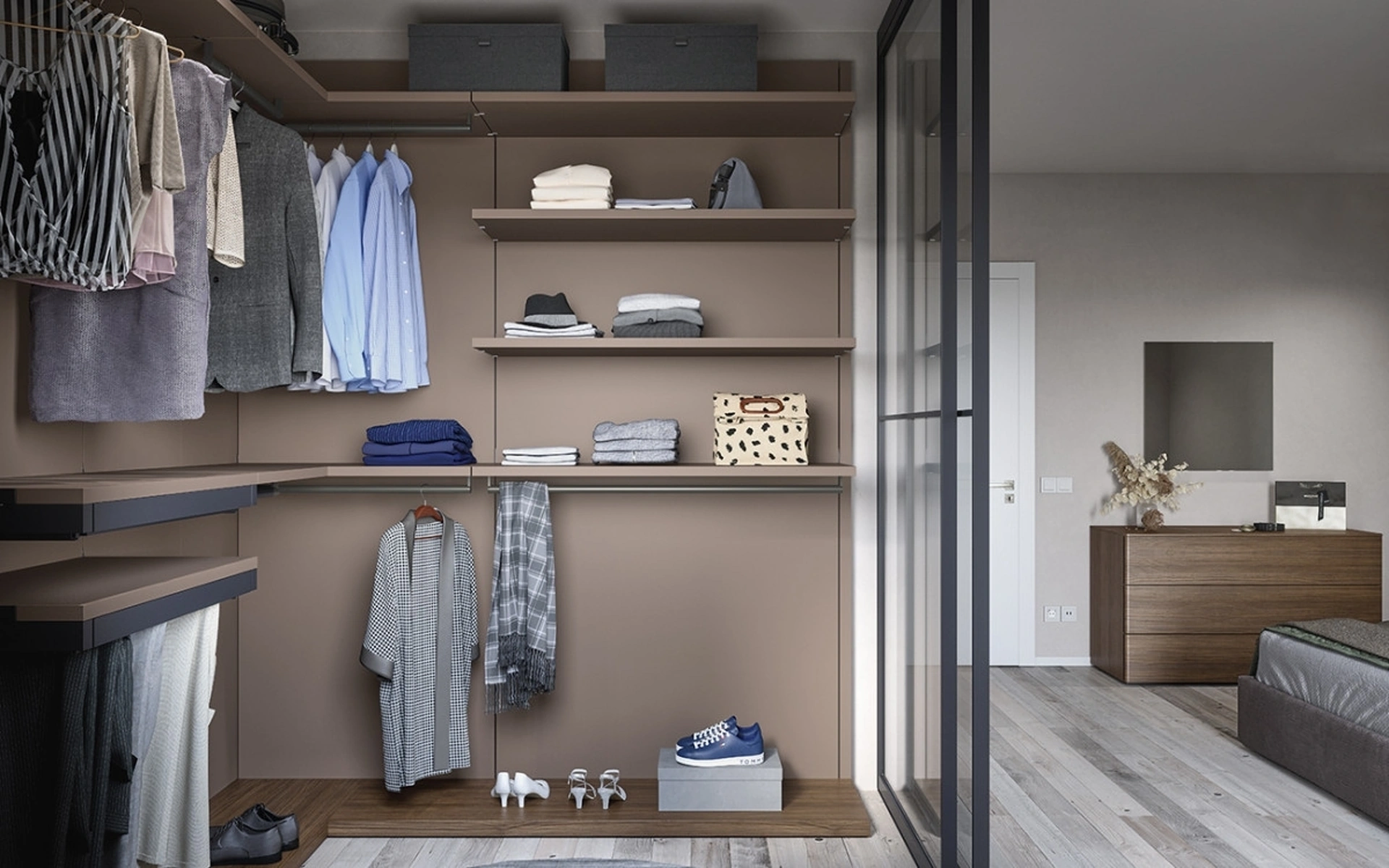 La riconosciuta firma Cinquanta3 vanta una ampia produzione di Armadi cabine armadio con ante scorrevoli, definiti da progetto raffinato e praticità necessaria. Per avere idee nel completare l’arredamento, vieni da noi e scopri un ricco catalogo di mobili e oggetti accessori tra cui questo guardaroba esclusivo e versatile. In showroom ti attendono le più accattivanti proposte di Arredamento Casa Cesena, comò e comodini sul mercato, diversificati per buon gusto, dimensione e cromie per completare alla perfezione una zona notte bella e funzionale. Cabina Armadio a cremagliera con ante scorrevoli 09B di Cinquanta3: compila il form per informazioni e preventivi e arreda la camera da letto come l'avevi immaginata.