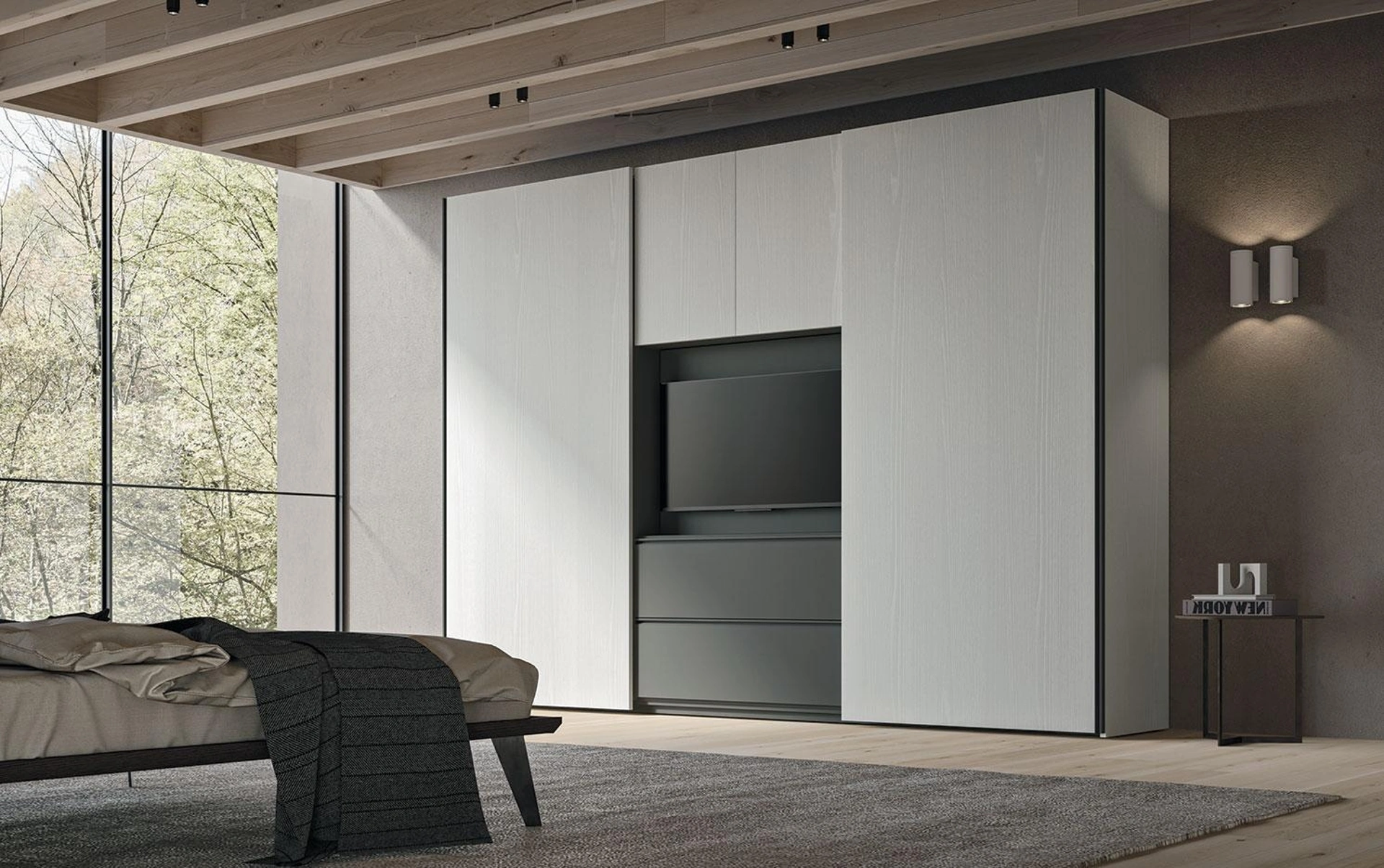Armadio con ante scorrevoli e vano TV Comp 398 di Mobilgam: compila il form per informazioni e preventivi e arreda la zona notte come l'hai sempre immaginata. La celebre firma Mobilgam annovera una eterogenea produzione di Armadi a muro con ante scorrevoli, caratterizzati da design unico e praticità necessaria. In showroom ti aspettano le più interessanti proposte di Arredamento Casa, comò e comodini in commercio, vari per stile, grandezza e tonalità per completare alla perfezione una camera da letto pratica e sofisticata. Per trovare spunti nel progettare l’arredo, vieni da noi e scopri un ricco catalogo di mobili e complementi tra cui questo armadio esclusivo e versatile.