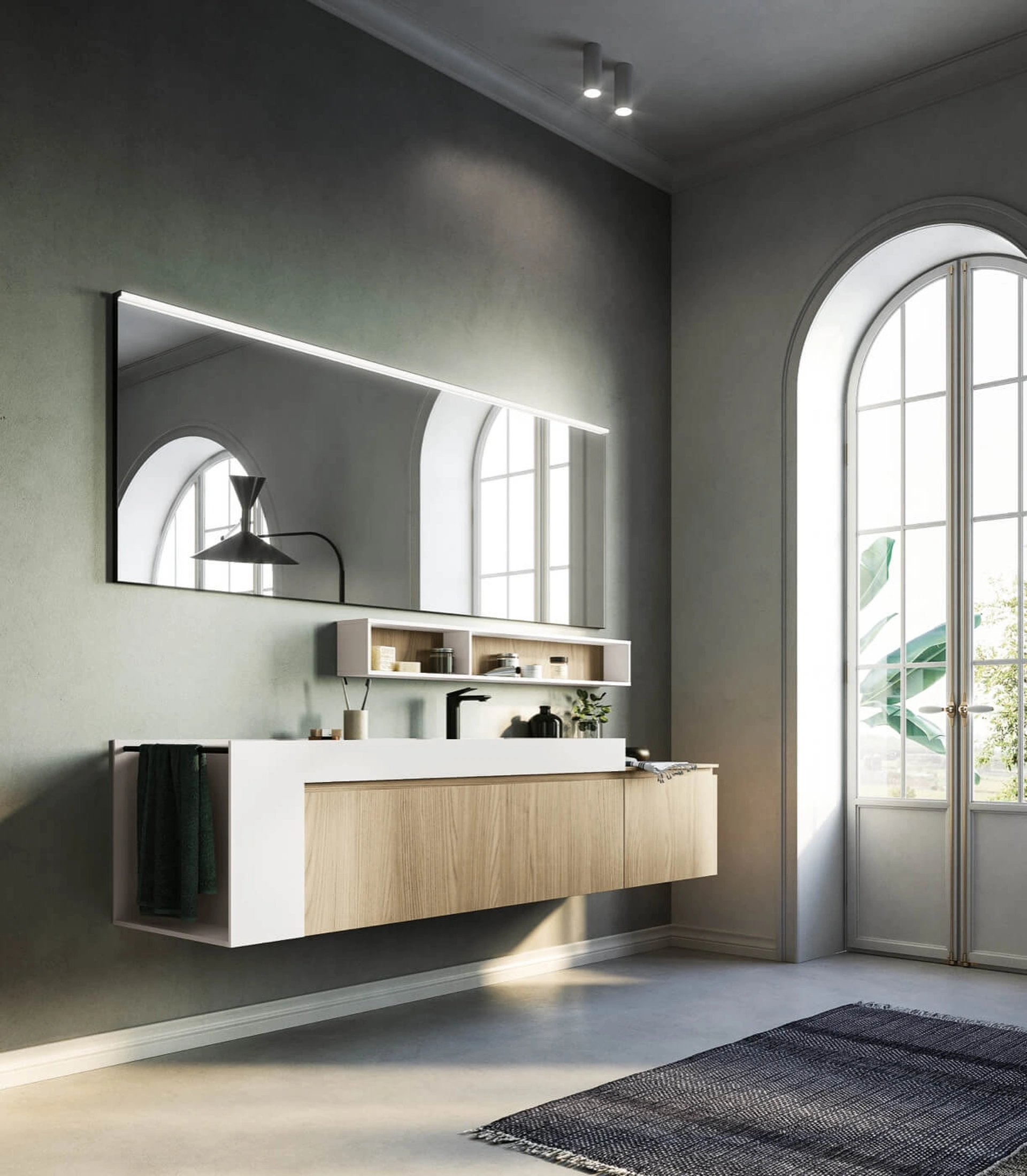 Ricca offerta di linee e tonalità per le composizioni di Arredo Bagno design con mobili bagno sospesi di Puntotre, soluzioni sempre votate alla massima personalizzazione. Al giorno d'oggi la stanza da bagno non è più solo un ambiente di servizio, anzi al suo arredo viene dedicata la medesima attenzione degli altri locali di casa. Per merito della vasta offerta di soluzioni di Arredo Bagno design con mobili bagno sospesi di Puntotre, ogni spazio è esteticamente apprezzabile e confortevole. Il modello Mobile da Bagno sospeso Sistema Gola 04 di Puntotre in laminato qui offerto arreda il locale all'insegna di originalità e design, con grande eleganza. Il noto e conosciuto marchio propone mobili bagno di ogni tipo, così da rendere l’arredo dell'ambiente veramente personalizzabile, agibile e versatile.