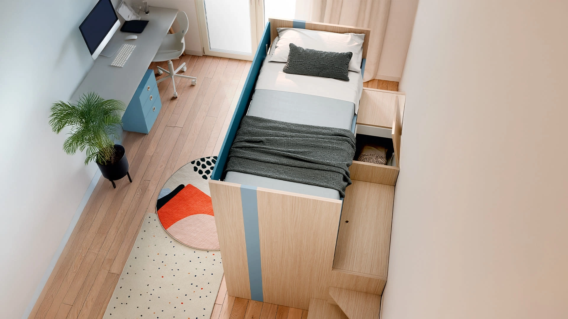 Proponiamo nel nostro punto vendita diverse Camerette con letti a castello moderne per bambine del marchio, ideali per accompagnarli durante il loro sviluppo. I nostri bambini passano ore della giornata nelle loro camere da letto: rendile adatte per fare i compiti, giocare e riposare quotidianamente. Le Camerette dei nostri figli sono il luogo in cui passeranno i loro primi anni divertendosi e sognando, dunque è essenziale che lo spazio sia pratico. Con la Cameretta con letti a castello Lila di Nidi in melaminico ti assicurerai un perfetto mix di ergonomia e sicurezza, ideale per la stanza dei tuoi figli.