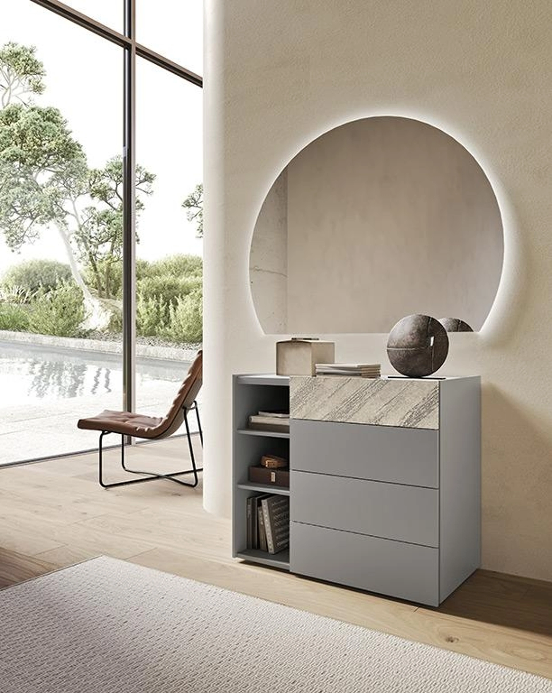 Materiali di qualità e ottima fattura per il Comò Smart Laccato di Mobilgam in in laccato opaco, disponibile in showroom con le altre varie proposte della firma, per fare della zona notte uno spazio che ricalchi la tua personalità. I Comodini sono mobili capaci di ultimare la camera garantendo una superficie di appoggio certamente utile e poliedrico.
