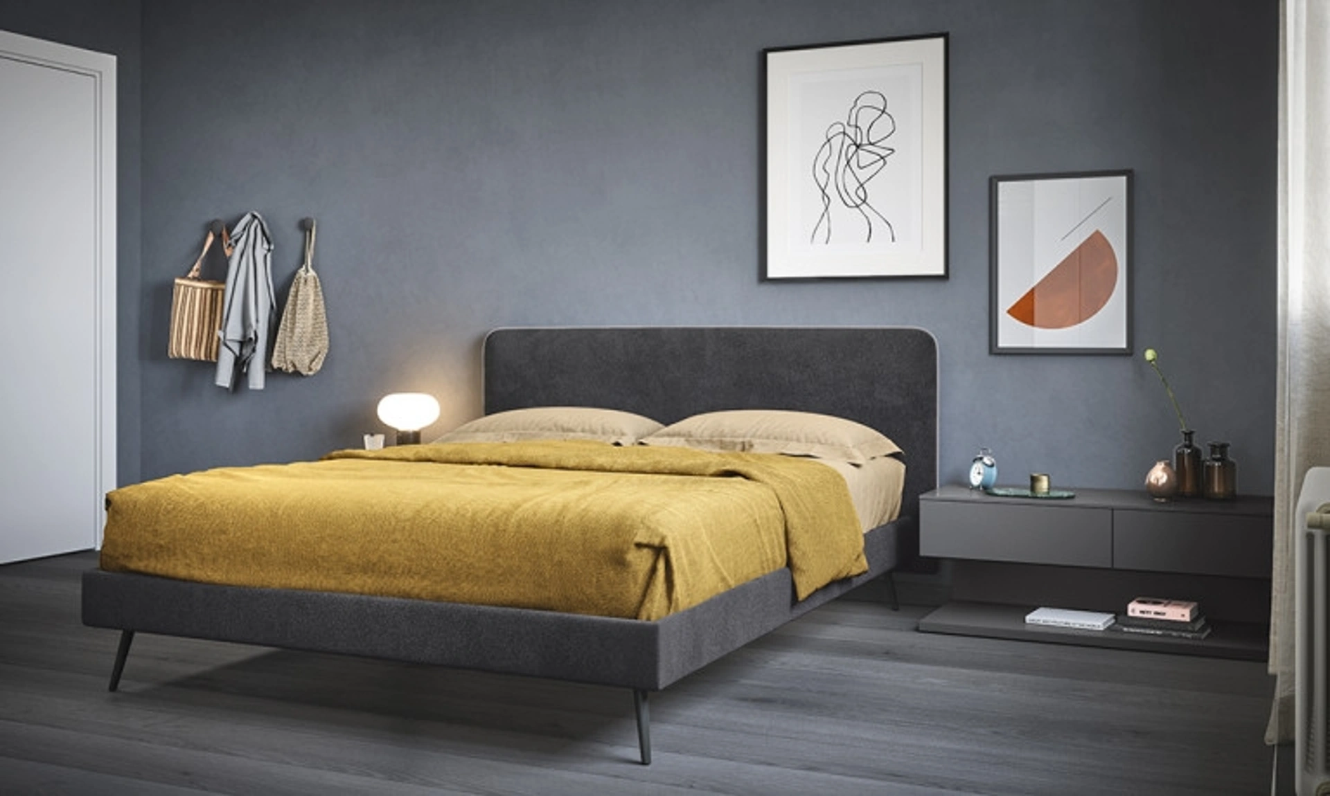 Il Letto in tessuto Boston di Cinquanta3 è una delle più originali soluzioni dell'azienda, specialista del riposo, capace di assicurare praticità, comodità e uno stile unico. Se vuoi garantirti la comodità più totale nei tuoi momenti di relax, scegli i Letti matrimoniali moderni in tessuto come il modello mostrato in foto. La camera da letto è l'ambiente di casa che più rispecchia l'animo di chi la frequenta, locale in assoluto dedicato al relax, alla distensione e alla riservatezza. Scopri una ricca gamma di letti imbottiti dei migliori produttori di Arredamento Casa Cesena disponibili in negozio e ottimizza la tua camera da letto.