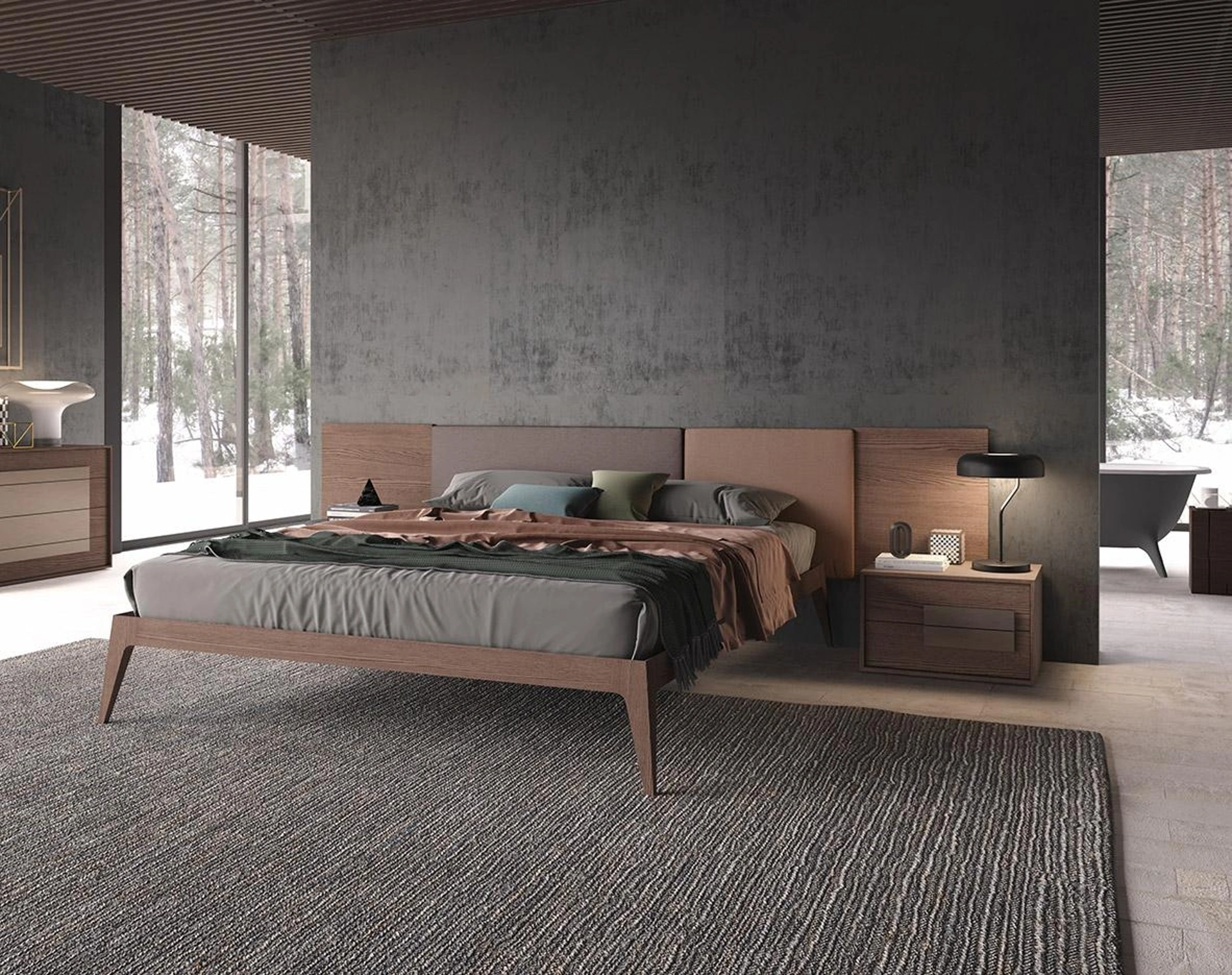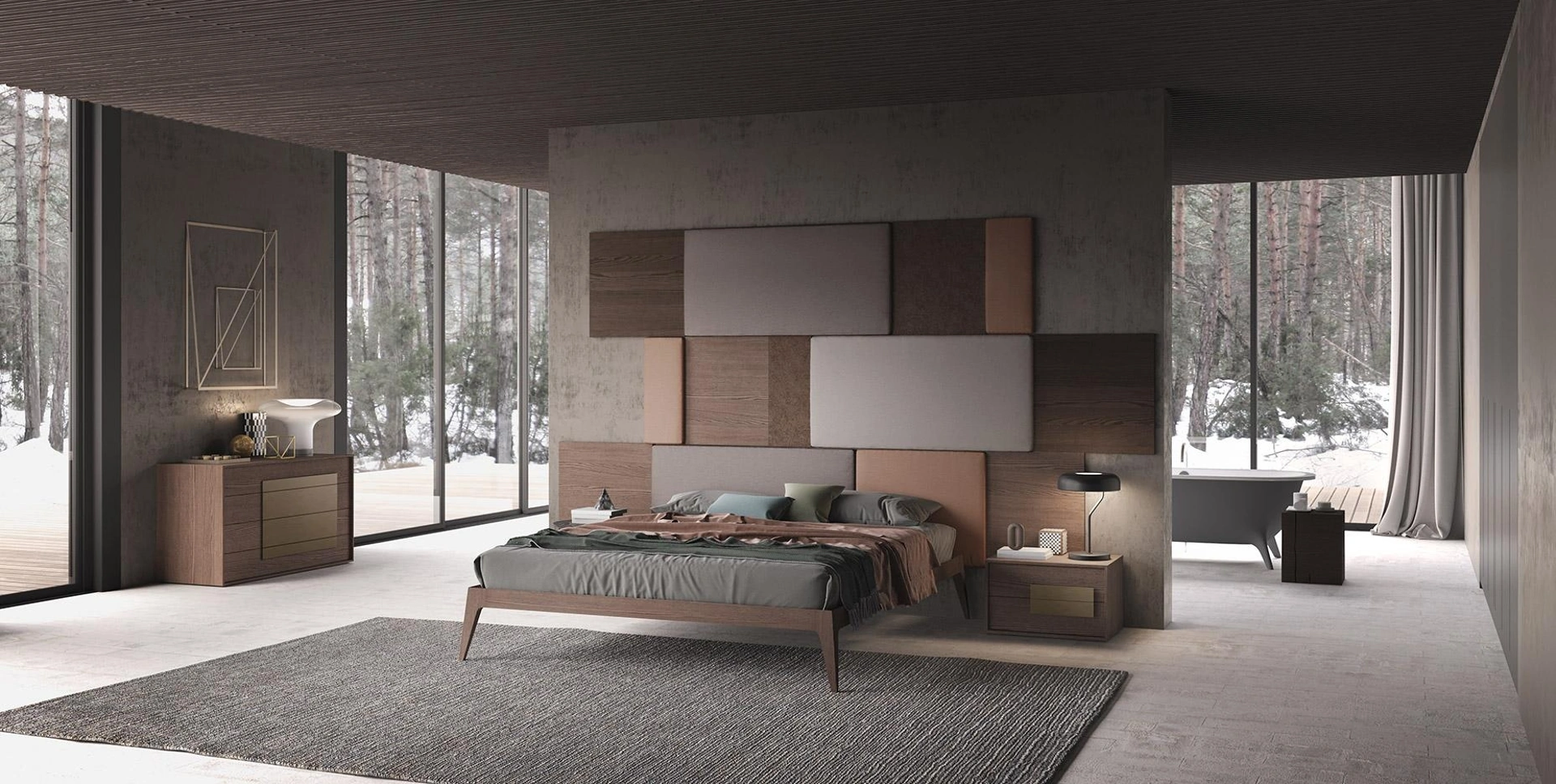 Il Letto Tetris in legno e tessuto Mobilgam ricrea uno spazio accogliente e confortevole in ogni camera da letto, assicurandoti il relax totale e uno stile unico. Scegli tonalità e texture e realizza il tuo progetto d’arredo nella camera da letto, progettandola proprio come l'hai sempre sognata. I Letti matrimoniali con testiera del brand, leader nella produzione di Arredamento Casa per la camera da letto, vengono progettati per essere abbinati a mobili ed elementi accessori di ogni tipo, come armadi e comodini, lampade e piantane. Se desideri una soluzione in legno, il modello mostrato in foto è connotato da materiali di prima scelta e forme decise, che invitano a trascorrere un sonno sereno e rigenerante.
