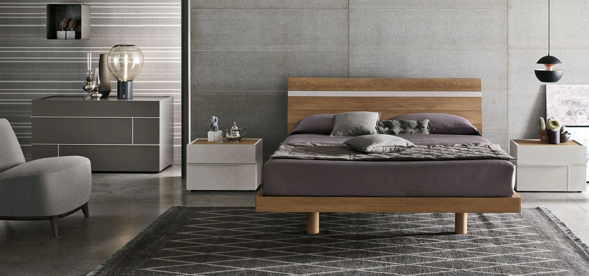 Se desideri creare un'ambientazione intima e rasserenante, il modello presente in foto fa per te: nella stanza del riposo dovrai creare un'ambientazione rasserenante, per farti rigenerare le energie psichiche e fisiche ogni notte. Scopri in negozio un ricco catalogo di Letti con testiera, mobili ed elementi accessori per la zona del riposo dei migliori produttori. Sicurezza delle finiture e grande comfort sono gli ingredienti che distinguono tutti i prodotti dell'azienda, tra cui anche il letto in melaminico in foto. Se desideri ammobiliare spazi moderni, ti aspettiamo per proporti la nostra design di Arredamento Casa per realizzare il tuo concept su misura.