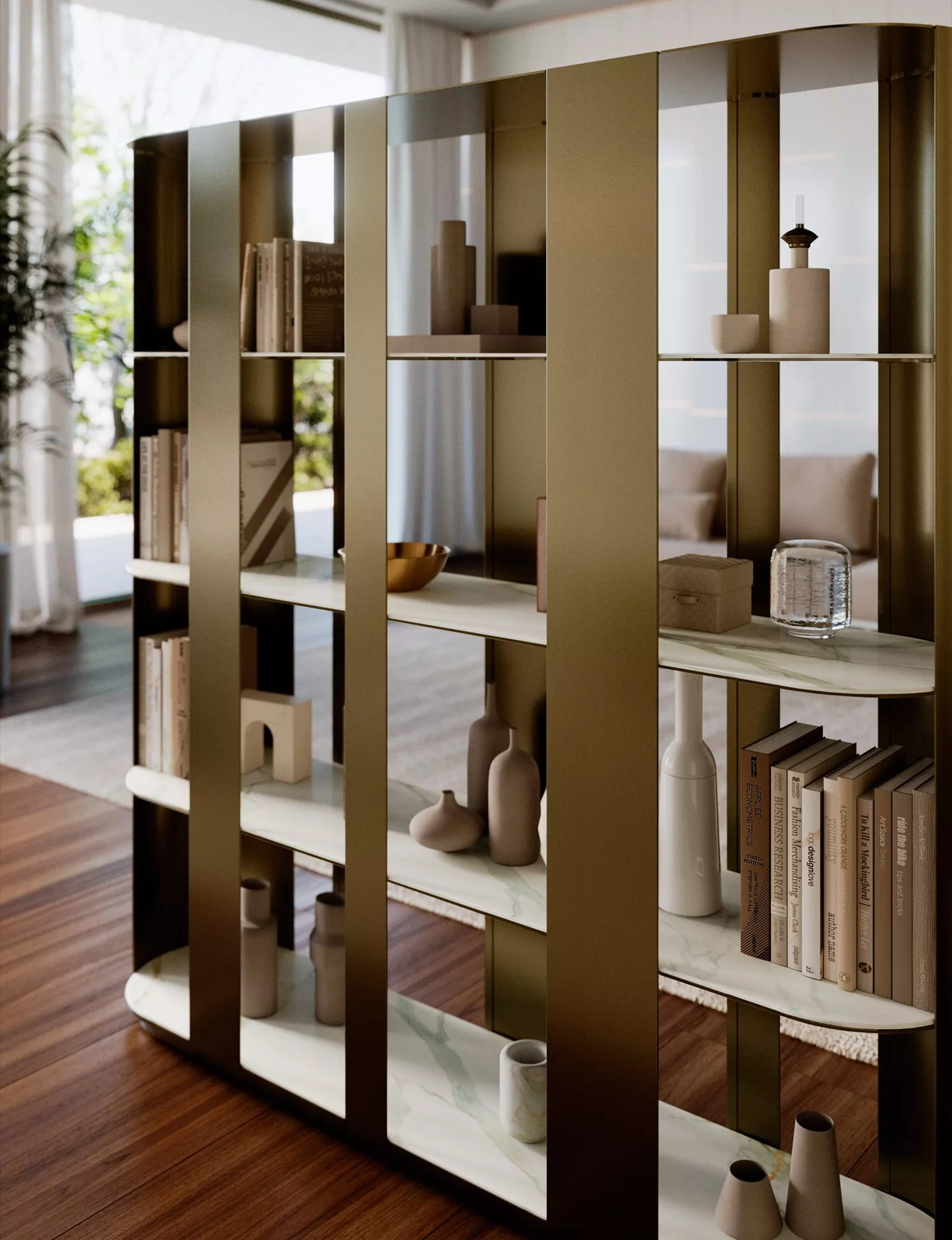 Da noi troverai vari modelli di Librerie divisorie design per il soggiorno, come il modello in metallo nella fotografia. Scopri in negozio la nostra collezione di Librerie divisorie delle migliori marche di Arredamento Casa. La Libreria divisoria Helena di Bontempi è ideale per dare personalità ai tuoi spazi: le differenti soluzioni della marca ti consentiranno di attrezzare al meglio un living operativo e pratico. Grazie alla Libreria divisoria Helena di Bontempi potrai cambiare il mood della tua casa, sfruttando bene ogni spazio con un ottimo effetto estetico.
