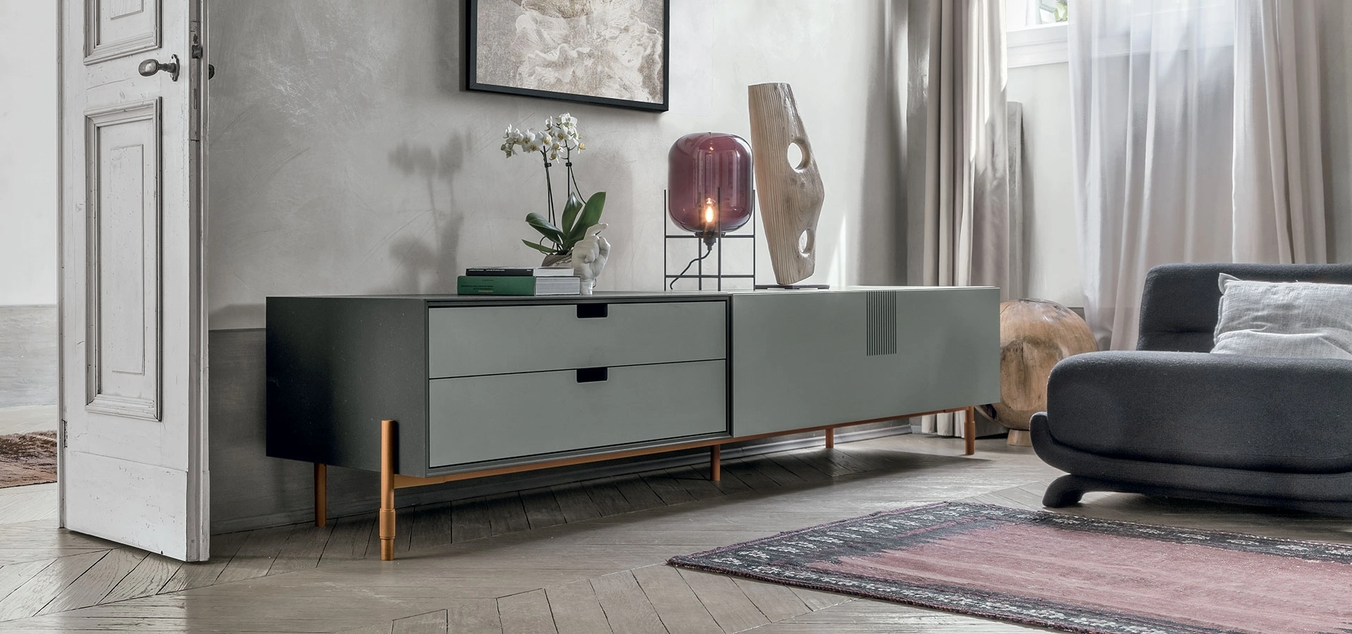 Il modello in foto è appartenente alla linea di Mobili Porta Tv moderni in melaminico di Tomasella: in showroom troverai solo le composizioni più originali sul mercato. I Mobili Porta Tv, se selezionati con attenzione, servono a ultimare il tuo soggiorno fungendo da plurifunzionale piano d’appoggio per la tua oggettistica, per la TV e quant'altro. Nel living servono mobili che ci accompagnino nella vita in casa, facilitando i gesti che compiamo nel quotidiano e creando peculiari atmosfere. Utili e di charme, i nostri Mobili Porta Tv Tomasella in melaminico per ambienti moderni sapranno organizzare al meglio gli spazi valorizzandoli.
