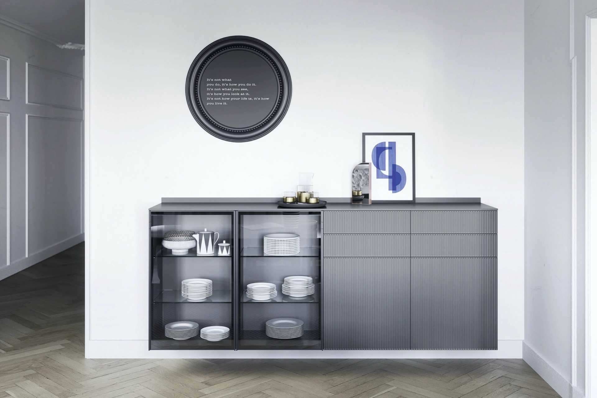I Mobile sospeso Box 18 in laccato Grigio di Novamobili fanno al caso tuo se vuoi personalizzare gli spazi di casa con una composizione dallo stile deciso e di grande fascino. I Mobili sospesi moderni Novamobili, come il modello presente in foto, sono tra i pezzi di arredo più irrinunciabili in ogni casa, per ottimizzare gli spazi con stile. Qualunque siano le tue esigenze abitative, i Mobili sospesi ti consentiranno di risolvere le necessità contenitive del tuo soggiorno mixando al meglio funzionalità e stile. Se desideri ultimare le qualità pratiche del tuo soggiorno con una composizione sospesa salvaspazio, scoprirai in showroom una gamma praticamente infinita di soluzioni.