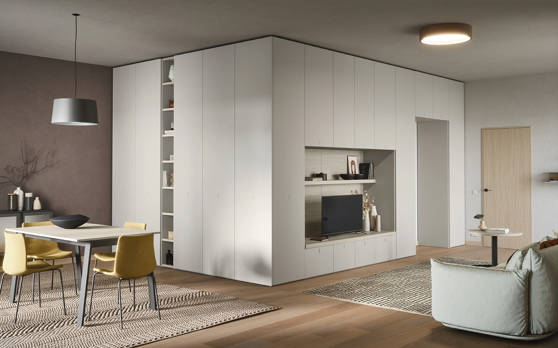Attraverso un gioco dinamico di accostamenti fra componenti a giorno o vani chiusi, le Pareti Attrezzate moderne arredano il living usufruendo al meglio di ogni spazio. Per informazioni e preventivi sulla Parete Attrezzata 05C di Cinquanta3 in foto contattaci! Il modello proposto è realizzato in melaminico, ma grazie ad un'infinità di finiture, tonalità e conformazioni, potrà adattarsi a stili di ogni tipo. Questa parete attrezzata è una delle soluzioni della marca e ti permetterà di allestire la zona giorno secondo le più particolari esigenze abitative.
