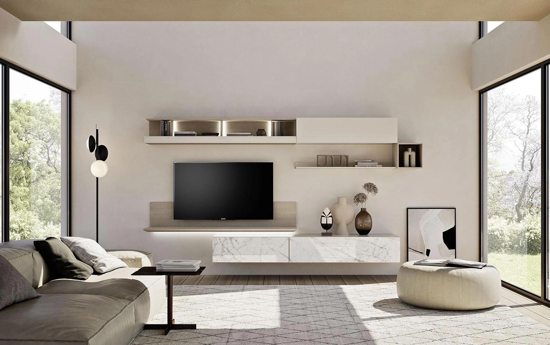 I mobili soggiorno in vetro dalle linee moderne come il modello nell'immagine sono davvero polivalenti e capaci di arredare il living usufruendo al meglio di ogni angolo. Mobilgam propone inediti modelli di mobili soggiorno, diversi per stile e conformazioni, texture e accessori: scopri nel nostro showroom l'Arredamento Casa delle migliori marche. La Parete Attrezzata Composizione Horizon 1015 di Mobilgam nell'immagine è una tra le più belle soluzioni d’arredo sul mercato: grandi doti di componibilità e le diverse opportunità di progettazione la rendono bella e funzionale. Lasciati affascinare da un ricco catalogo di arredi per la zona giorno e troverai la parete attrezzata che fa per te.