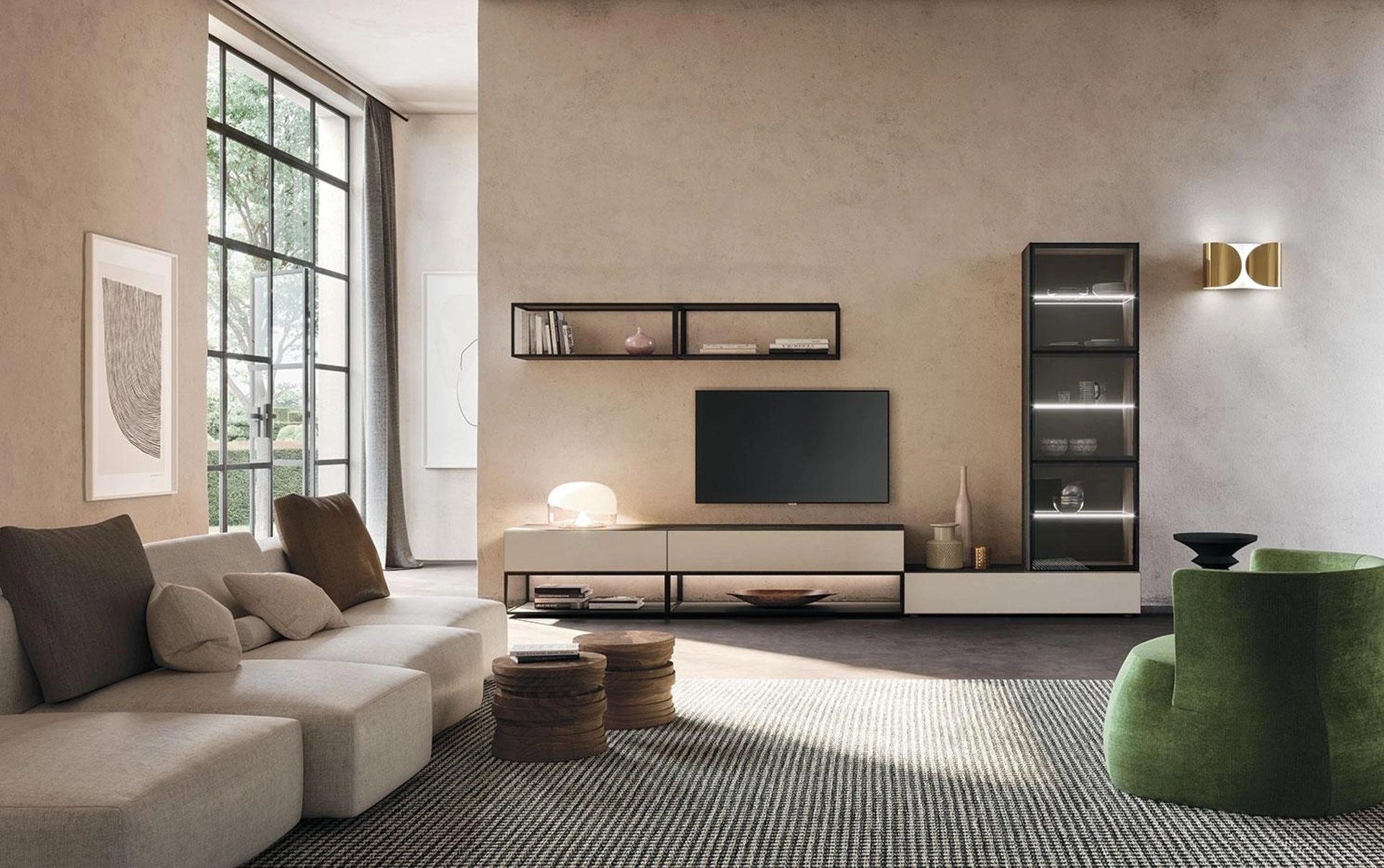 Questa parete attrezzata è una delle soluzioni della firma e ti permetterà di progettare il soggiorno seguendo le più personali esigenze abitative. Per informazioni e preventivi sulla Parete Attrezzata Composizione Horizon 920 di Mobilgam nella fotografia contattaci! Il modello proposto è realizzato in laccato opaco, ma grazie ad un'ampia gamma di texture, cromie e conformazioni, potrà adattarsi a stili di ogni genere. Attraverso un gioco dinamico di accostamenti fra accessori a giorno o vani chiusi, le Pareti Attrezzate moderne arredano il soggiorno usufruendo al meglio di ogni spazio.