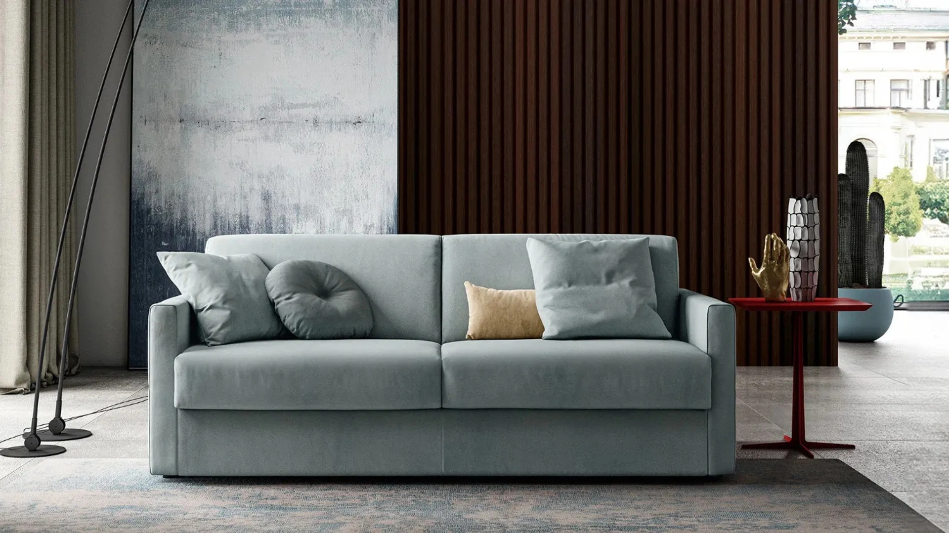 Il catalogo Doimo Salotti presenta tanti spunti per arredare l'habitat all'insegna di funzionalità e estetica, mettendo al centro il tuo comfort. Divano Letto Tibby di Doimo Salotti: ricrea uno spazio intimo e confortevole in spazi moderni dall'estetica raffinata. I nostri Salotti vengono progettati per essere abbinati a elementi accessori di ogni genere, come tavolini, abat jour e piantane o in combinazione con ulteriori divani in tessuto. Se desideri divani e poltrone con letto come il modello nella fotografia, contraddistinto dai volumi che invitano a goderti i tuoi momenti di riposo.