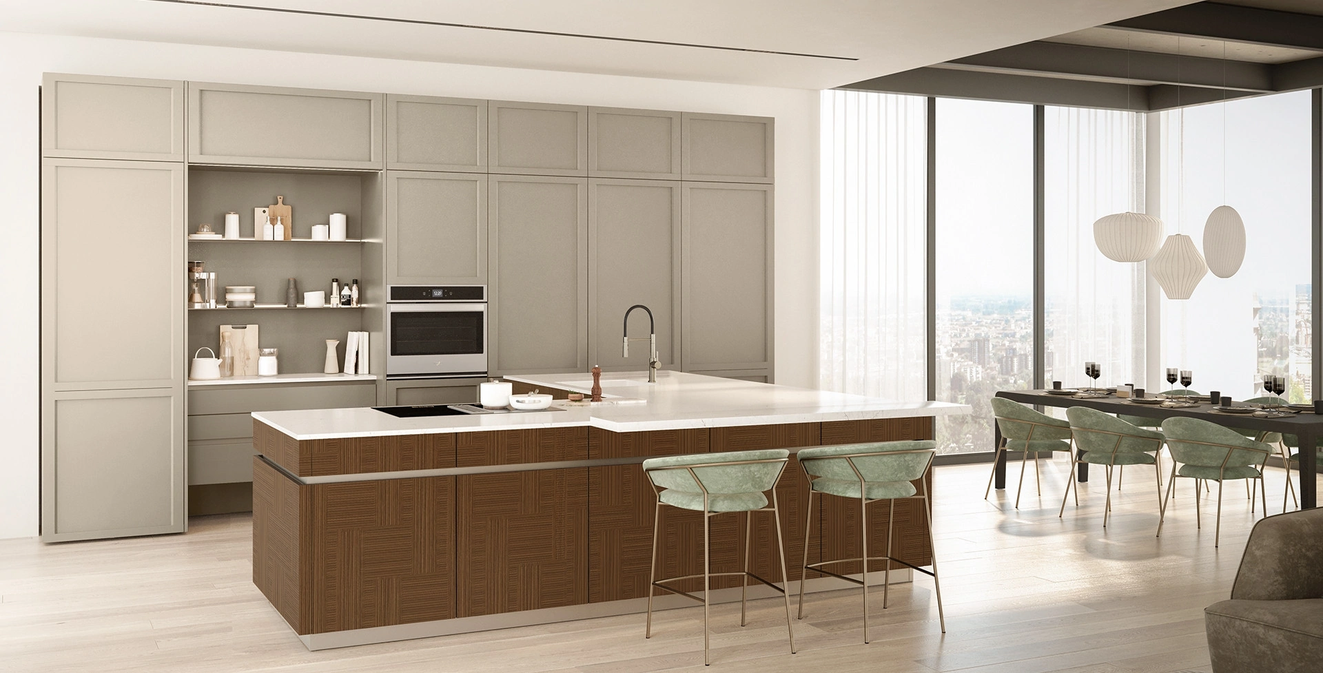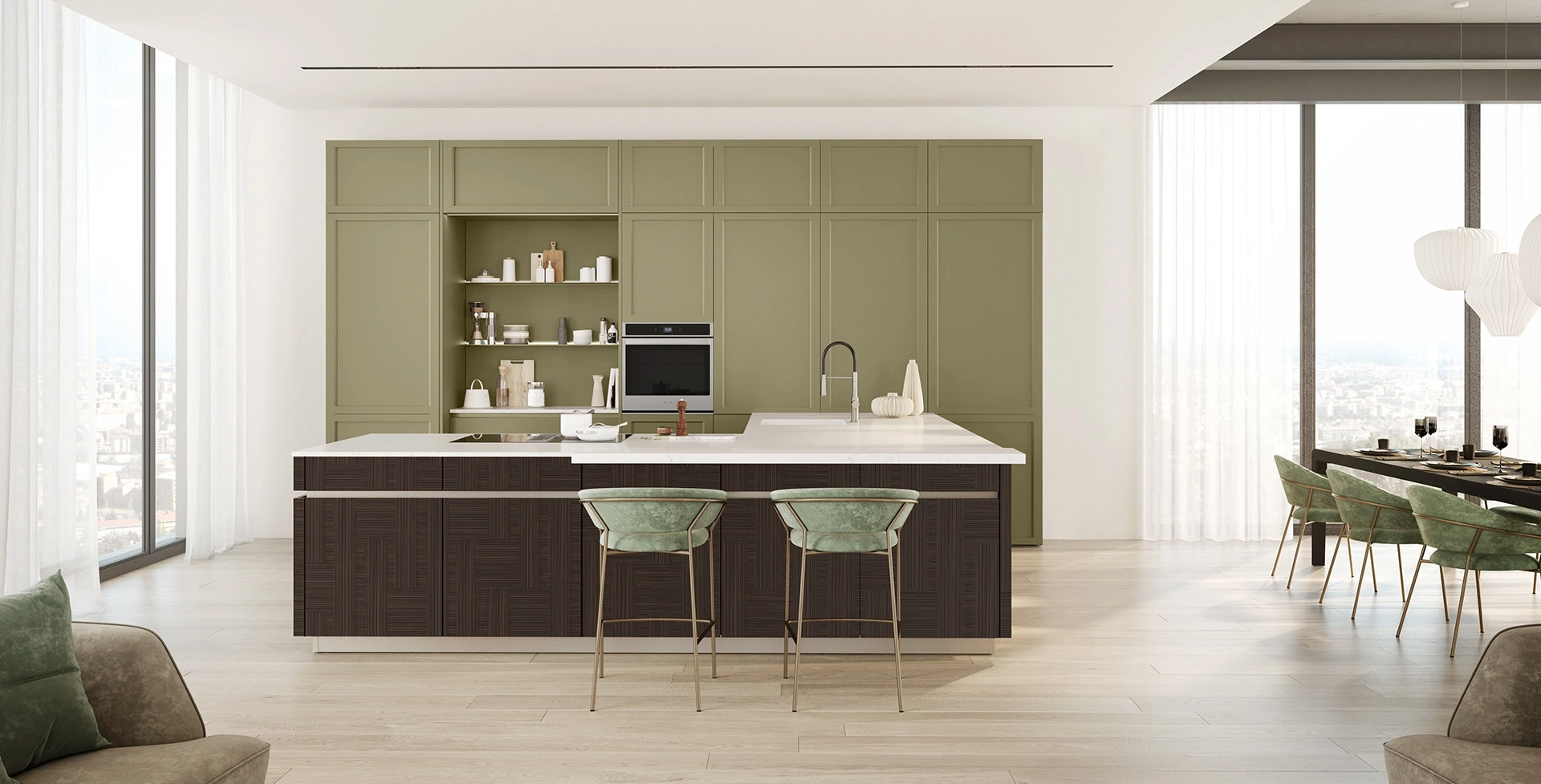 Ti aspettano diverse proposte moderne con penisola per la cucina, ideali per chi cerca uno spazio accogliente, funzionale ed elegante ma moderno nello stile. Se cerchi una soluzione dalle linee essenziali, caratterizzata da un design meno "pesante", ti raccomandiamo di orientare la scelta verso le Cucine Moderne del marchio Veneta Cucine. A rendere la Cucina Moderna con penisola Convivio di Veneta Cucine una tra le più esclusive soluzioni del marchio, oltre ai suoi bellissimi dettagli, è il materiale: è costruita in laccato opaco per assicurare comfort e durata negli anni.