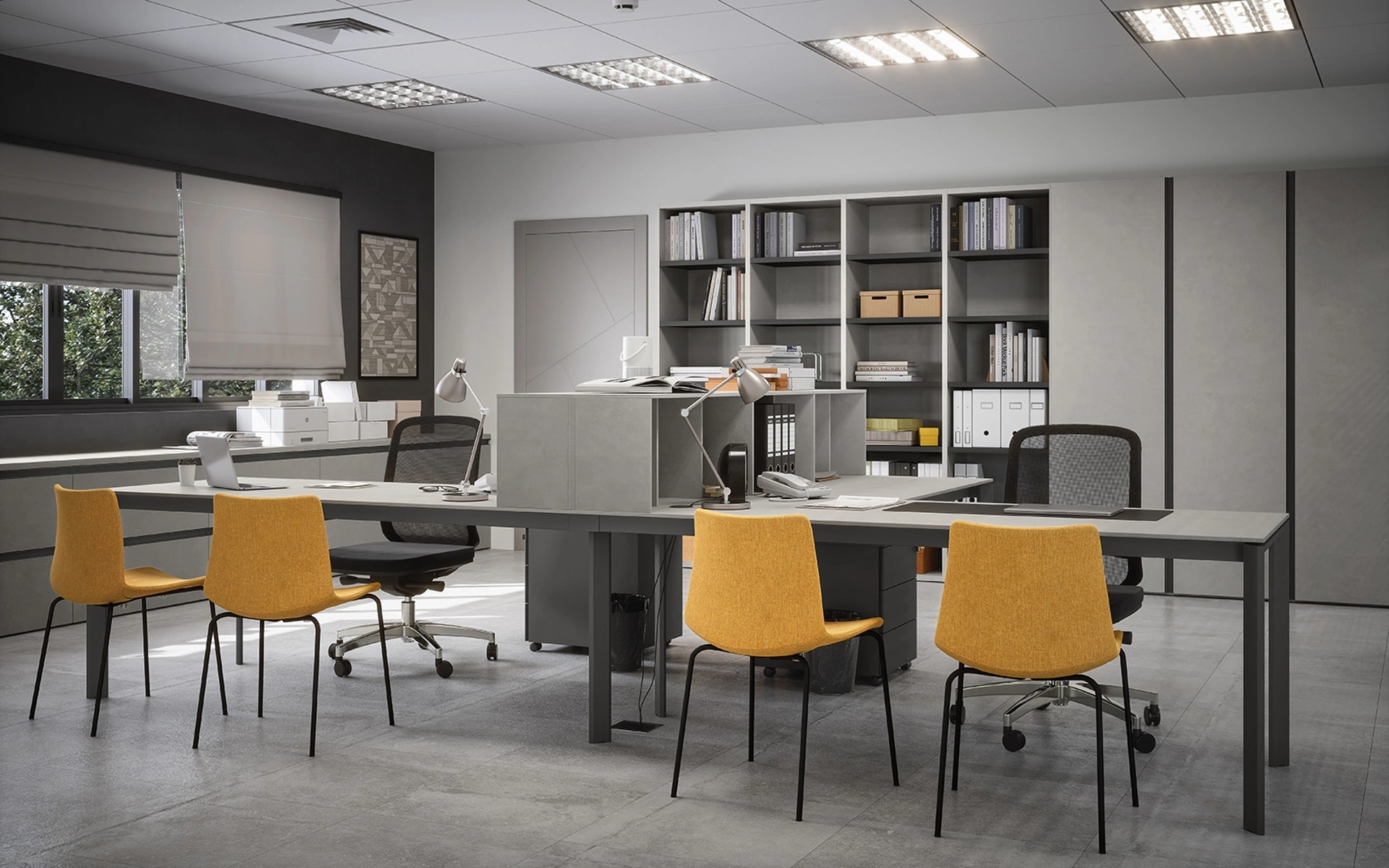 Mobile Ufficio Libreria 04A di Cinquanta3: è appartenente alla gamma praticamente infinita di mobili per gli spazi lavorativi del marchio, leader nel comparto dell’Arredo Ufficio. In showroom potrai toccare con mano tutte le più originali composizioni di Arredo Ufficio in melaminico disponibili in commercio, sempre di ottima fattura. La proposta in foto, tra i vari modelli di librerie per ufficio firmati Cinquanta3, conferirà personalità e stile agli spazi, attrezzandoli coniugando logica e coerenza. Cinquanta3 produce mobili di ottima fattura, sempre capaci di accontentare diverse richieste per quanto riguarda sia l'estetica che la praticità.